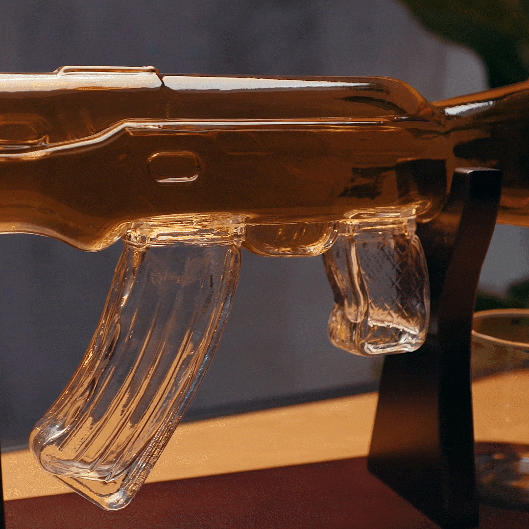 Iconic AK-47 Shape: The hand-blown carafe, expertly molded into the iconic shape of an AK-47, stands as a tribute to precision craftsmanship. It doesn't just pour whiskey; it delivers a tactical whiskey experience, commanding attention and sparking conversations.
